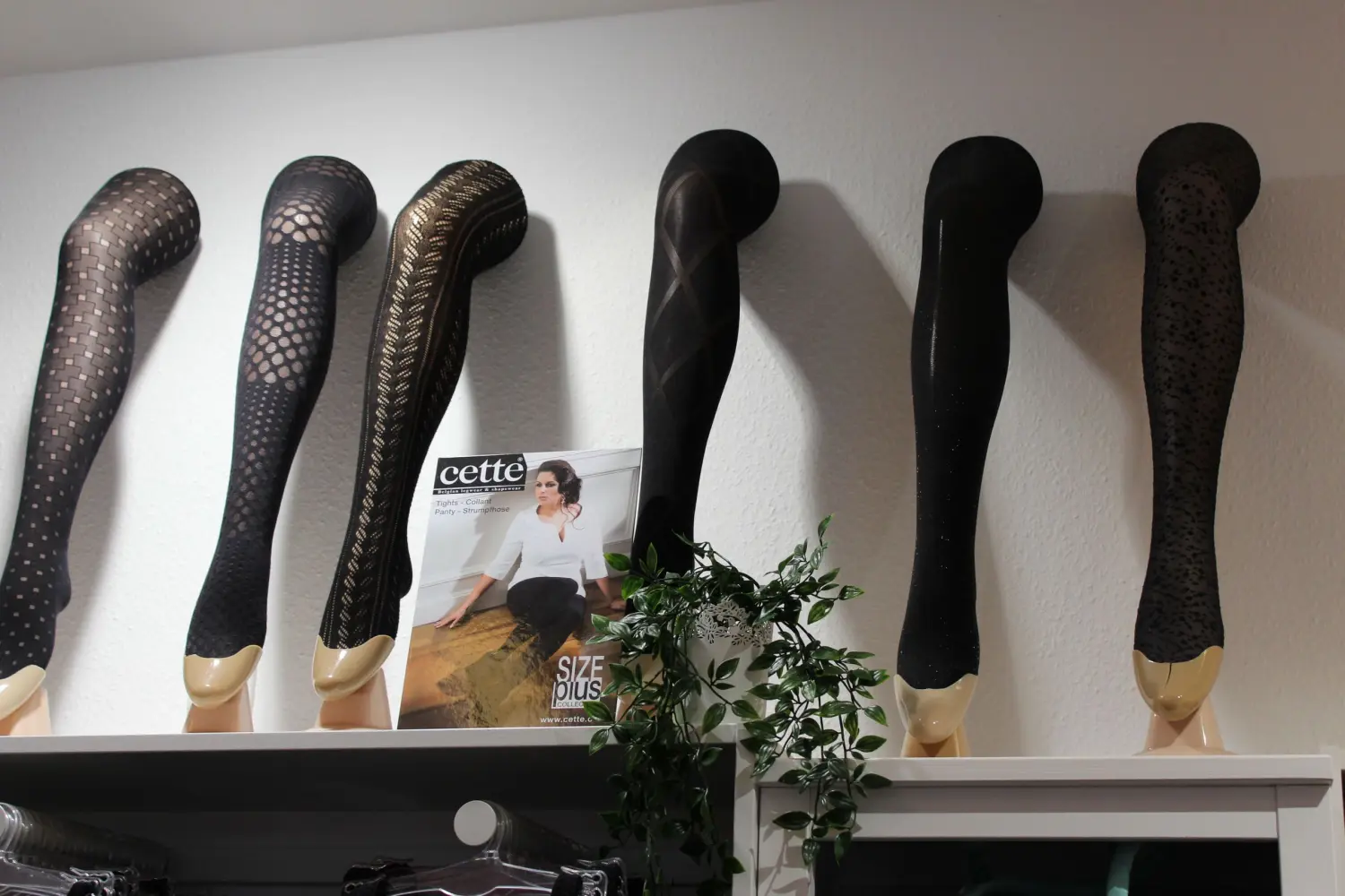 Fast! Für darunter gibt es feine Dessous und Wäsche bis Größe 110 F, Strümpfe und Socken von Cette, Wiggle Steps und Daily Socks (glamourös bis Größe 43). Dazu passt ausgewählte Schuhmode bis Größe 43. Besonders Frauen mit Übergrößen haben große Auswahl.